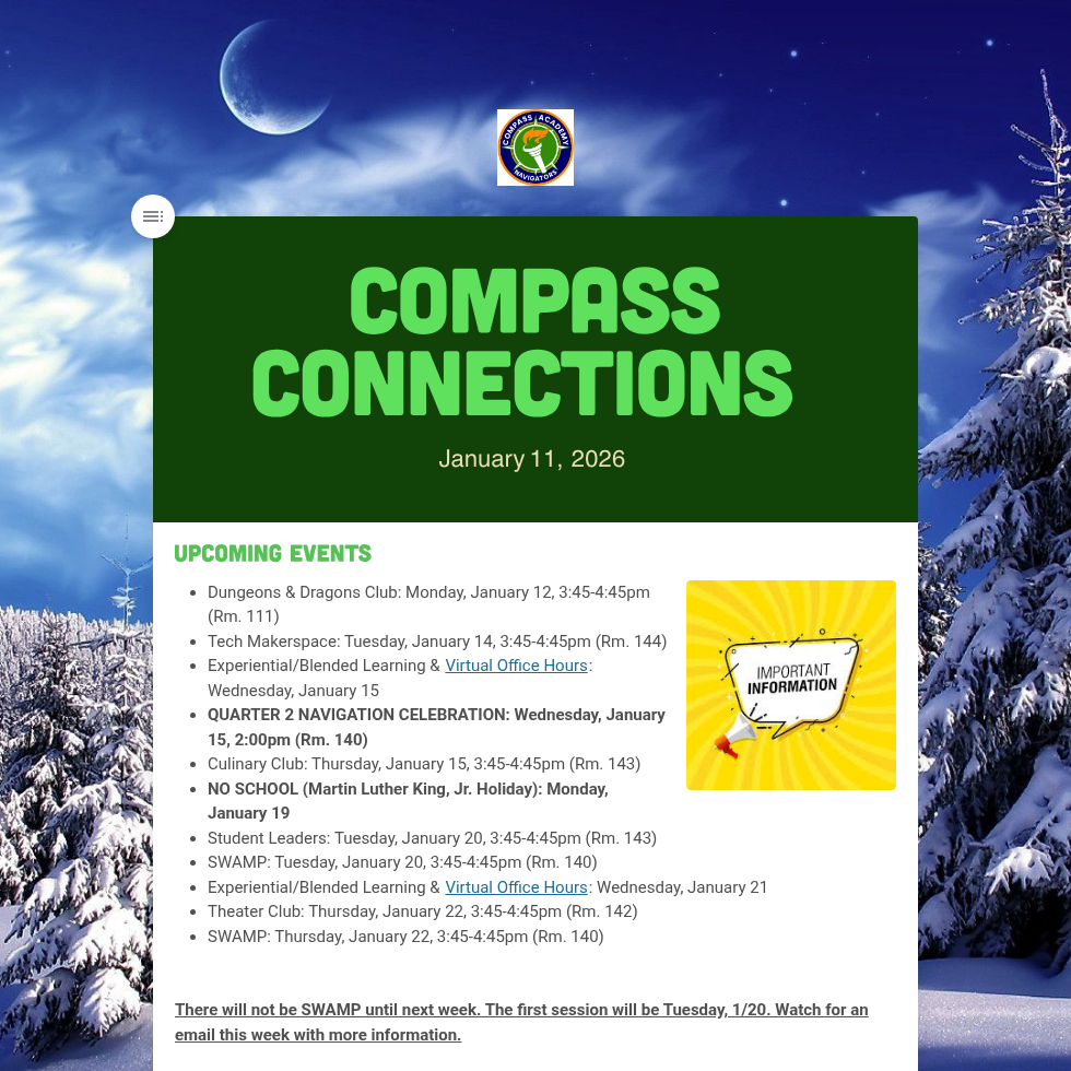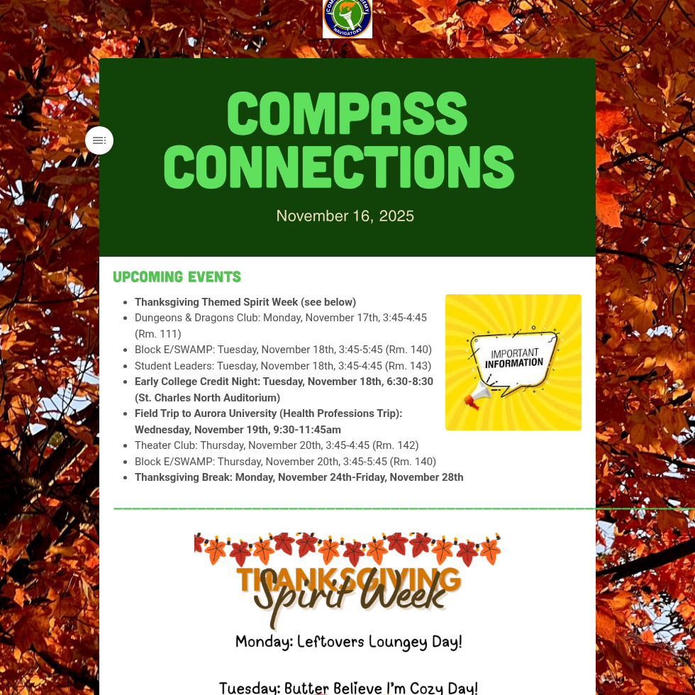 Weekly Compass Academy Lunch Menu Selections