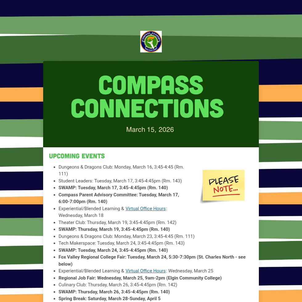 Newsletters are sent out via Finalsite